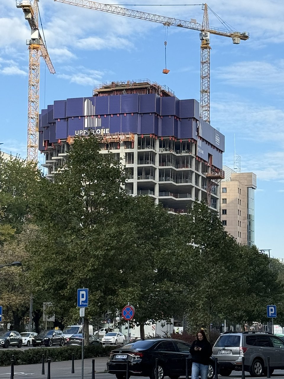 Trwa realizacja Upper One. W niespełna pół roku od rozpoczęcia budowy nadziemia budynek biurowy osiągnął 41% swojej docelowej wysokości. Prace postępują w tempie około jednej kondygnacji na tydzień/półtora tygodnia, a zakończenie inwestycji i oddanie jej do użytkowania zaplanowano na 2027 rok.